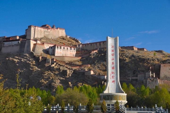 江孜宗山古堡位于江孜县城区的宗山上,距离白居寺不远,在山下远远看去尤其壮观。这里是1904年西藏人民抗击英国侵略军的地方,江孜宗的所在地,也是电影《红河谷》的拍摄地。现在这里被确定为爱国主义教育基地,通过遗址上的抗英炮台、展厅、勇士跳崖处、原江孜宗议事厅、地牢等,展示了当年封建农奴制时代江孜宗的原貌,再现了当年藏地军民抗击英国侵略者的英勇,人们还依稀可以找到当年江孜宗生活和办公的痕迹。