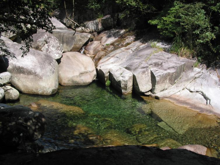 这里丛山峻林、植被良好、雨量充沛,主峰海拔高2000多米,有得天独厚的植物、动物、矿藏等资源,高山风景更是让人流连忘返。在这优雅而神秘的瑶村上游就是神秘的越南原始森林。在越南原始森林处甘泉踊跃,于中国的大坑村汇流成河,河水就像矿泉水一样干净之极,滋养了南疆边境线上几千年的人文发展。漂流的起漂点就在大坑村里面,所以我们有“矿泉水漂流”之美誉,当之不愧。