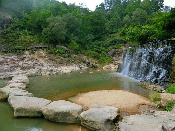 青龙潭,潭水清碧甘甜,蜿蜒若龙,岸边岩石奇布,像云朵,似山峰,潭水犹如龙腾云海若隐若现,故名青龙潭。进入景区的第一眼就见大小冰臼云集。深浅不一,形态各异,清流潺潺从臼中流过,令人惊叹大自然之鬼斧神工。再溯流而上又见岩石如刀削斧砍,气势磅礴。潭水如镜,清净无染。有游客感慨诗云“坑中无尘客心清”又一老先生诗云“凤南景色无双处”此乃粤东独一无二之山水景观,既自然又壮观。无丝毫造作,是真正的自然生态区。