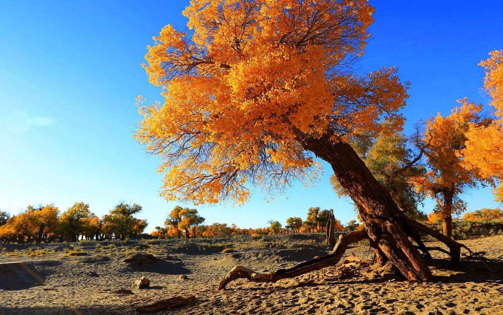 一到秋季,这里简直就是色彩的天堂,被大自然的颜色所震撼,被大漠风光所吸引。