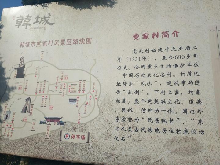 古老的石砌巷道、千姿百态的高大门楼、庄严的祠堂、挺拔的文星阁、布局合理的四合院、淳朴的村民,这里是民居瑰宝"党家村"。优越的自然条件、精致的建筑细节、深厚的文化底蕴、流传已久的祖谱、家训、村史、民居中的文化内涵,都使得这座古村寨蜚声中外,经久不衰。