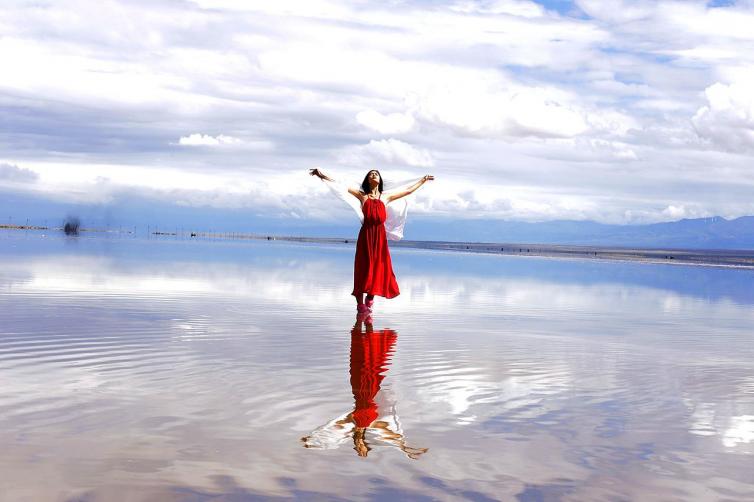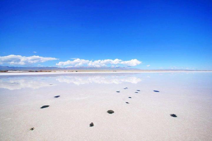 与其它盐湖不同的是,茶卡盐湖镶嵌在雪山草地间而非戈壁沙漠上,被旅行者们称为中国“天空之镜”。