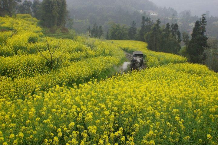 每逢春天,这里便化作诗中才有的胜景。生活也需要些这样美得不真实的记忆,清脆的汽笛声响彻山野,坐好,开向梦境深处的火车缓缓启动。