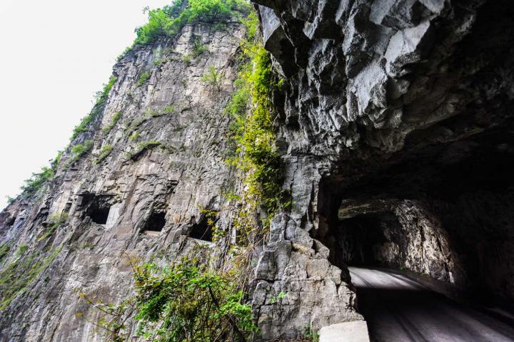 锡崖沟与王莽岭是相连的两个景区,从王莽岭下山到锡崖沟的景区,车会经过锡崖沟挂壁公路,这也是最推荐的下山方式。锡崖沟的挂壁公路是七条挂壁公路中工程量最大、开凿时间最早的挂壁公路。