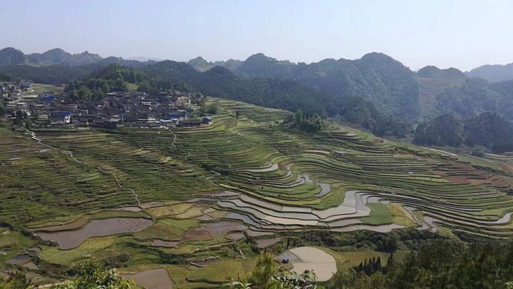 从江加榜梯田,是中国最好看的梯田景观之一,梯田中因为散落着苗乡特有的吊脚楼而格外美丽。