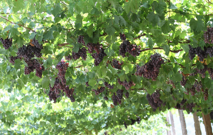 葡萄沟,位于昌黎县城西北的凤凰山山坡上。由于这里地理位置优越,三面环山,背风向阳,春、夏、秋三季白天光照充足,夜间因地势略高,气温较平原低。日夜温差大,有利于糖分的形成和积累,再加上水质好,形成了最适合葡萄生长的小环境。这里栽植葡萄已有400年的历史。翠绿色的葡萄棚把一条长约5公里,宽约4米的山路遮盖成一条“葡萄长廊”,“葡萄沟”因此而得名。