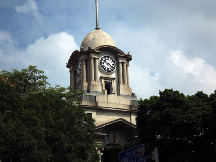 大钟楼是广州近代重要建筑之一,钟声清脆,声闻十里,在芳村也能体听到。大钟楼由美国建筑师设计的,距今已解决有一百多年历史,钟楼高31.85米,主要建筑材料均由美国进口。1684年,正式公布开放广东、福建、浙江、江苏四省沿海为主通商贸易地点,并在广州、漳州、宁波、云台山设立了四个海关,开放对外贸易。后改四口通商为广州一口通商,时间长达83年。这海关大楼和在远一点的十三行便是很好的证明。
