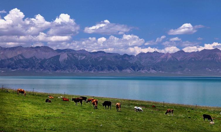 有人把新疆的赛里木湖和西藏的纳木错相比,因为赛里木湖也是高山湖泊,是新疆海拔最高、面积最大的高山冷水湖。赛里木湖被称为“净海”,可以看到10米以下的湖底。赛里木湖最美的时节是春夏之交,湖畔漫山遍野开着高山野花,每年7月,当地蒙古人都会在湖滨草原上举行传统的“那达慕”盛会。