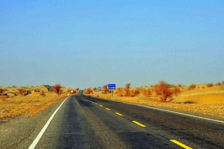 沙漠公路纵穿中国最大的塔克拉玛干沙漠,面积33万多平方公里的塔克拉玛干沙漠长期以来被认为是“生命的禁区”,游客也很难深入其腹地参观。但沙漠公路开通后自驾车游客可以实现穿越。沙漠公路全长446公里,是目前世界上在流动性沙漠中修建的最长的公路,一般需要开五六个小时,上路前车上一定要备好充分的水。