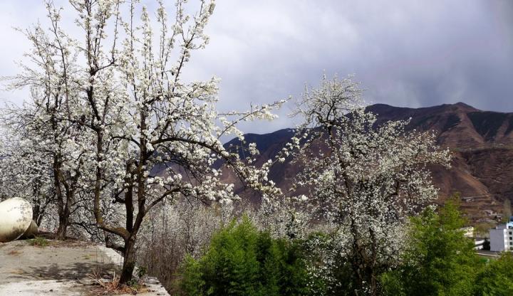 金川的沙耳乡,是一个秀美的藏寨,寨子道路两旁,盛开的梨花自然搭成一个天然的屏障,将行人和过往的车辆掩映在铺满梨花奇景的世外桃源中。