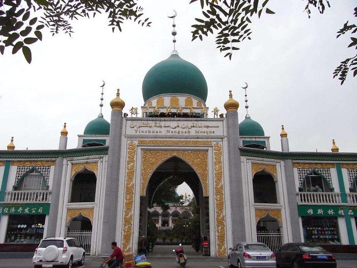 银川最为重要的清真寺,始建于明末,现建筑是上世纪八十年代重建的。清真寺中间的绿色大穹顶象征着先知默罕默德,四个小穹顶代表着伊斯兰教的四大教法学家。方形大礼拜殿正中的汉白玉门“米哈拉底”,是礼拜的方向。非穆斯林人员是不能进入礼拜大殿的。