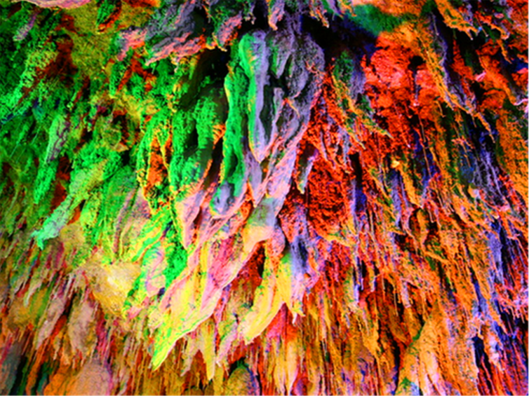 地下倒石林,原名蝙蝠洞,因洞内钟乳石多由洞顶垂悬倒挂又酷似蝙蝠而得名,又因钟乳石倒长在溶洞内,仿佛石林倒挂,更有旁逸斜出之怪石,因此又称地下倒石林。地下倒石林所在的溶洞空气清新流畅,气温凉爽宜人,仿佛设有天然空调一般。