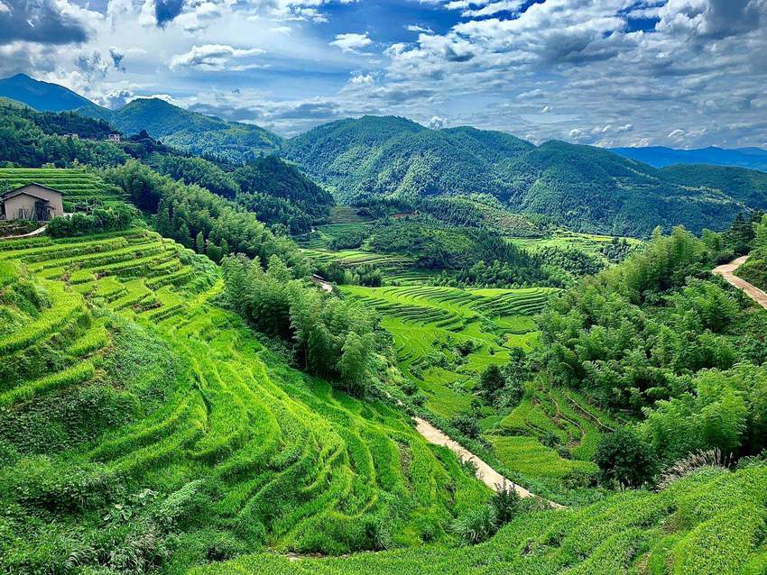 井冈山下,位于江西省吉安市的遂川桃源梯田景区,以如诗如画的山水田园风光著称,被誉为“全球十大最美梯田”