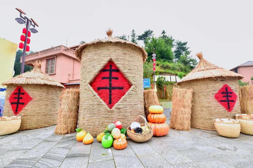 进入景区后,首先看到的就是桃源驿站广场,可以看到大型稻草茅屋,旁边放置一些丰收的农副产品