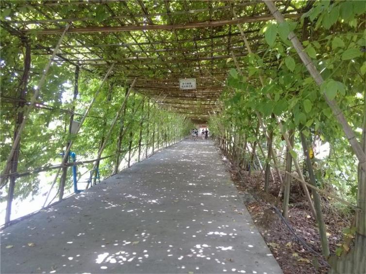 2、绿道骑行 农庄所在的大稳村也是个原生态的观光休闲好去处。大稳村拥有丰富的观光休闲资源,其中瓜果长廊、水上绿道最具特色。爸爸妈妈可以带小朋友们在瓜果长廊中漫步,学习采摘,或者一起骑三人自行车,欣赏两边的田园风光。