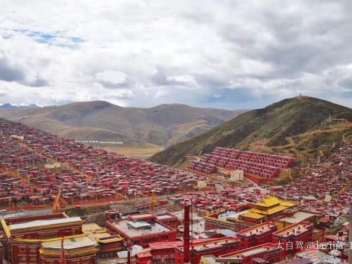 色达五明佛学院光从图片上就能看到非常的壮观,到了实际地方以后,尤其是从高处往下看,从来没见过这么壮观的景色,都是一片一片的佛教院,而且这里的僧人特别的多,都非常的虔诚,在这里旅游的人们也非常的有素质文明。