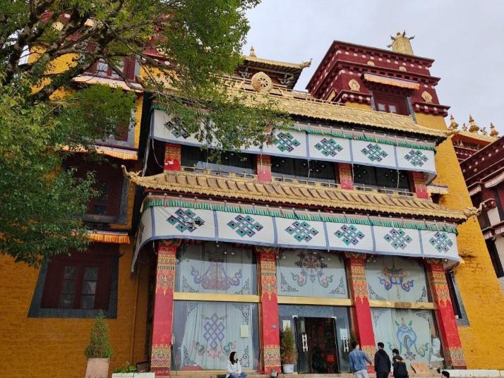 长青春科尔寺应该是旅行沿途看到最大的藏传佛教寺庙,正殿高耸雄伟,内部的壁画雕刻非常的精致,而且一进大殿之内就让人家感到肃穆起敬,因为不懂这样教的祈福方式,内殿有指示牌但也使用藏文,所以就用欣赏艺术的眼光来参观。