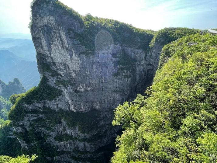 玉壶峰是天门山森林公园内众多山峰的一座,也是最高的几座之一,峰顶有一建筑物,需走一段栈道后才能爬到上面去,一般拍照只是远观比较好。