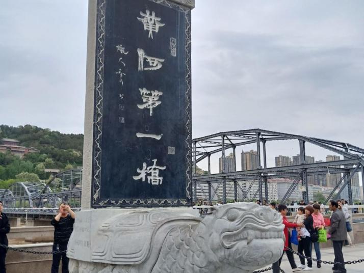 黄河铁桥又名中山桥,是兰州最重要的地标建筑之一,铁桥长两百多米,宽约有七八米,保持了一百多年前修建时的黑色铁架桥身,十分古朴。铁桥南侧桥头处,有金色的“中山桥”三个大字,还有一块刻有“黄河第一桥”的古老石碑,每天都有很多游客到此合影,作为来过兰州的留念。这座铁桥修建于清朝末年,是当时黄河上架起的第一座常年通行桥,也被誉为“天下第一桥”。