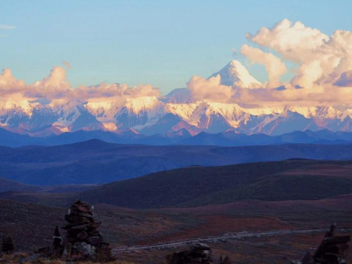 黑石城位于海拔四千多米的高尔寺山顶,用石块堆成,矗立于群山之间,放眼四野,群山环绕,这里是四川盆地到青藏高原的过度带,高原反应开始增强。