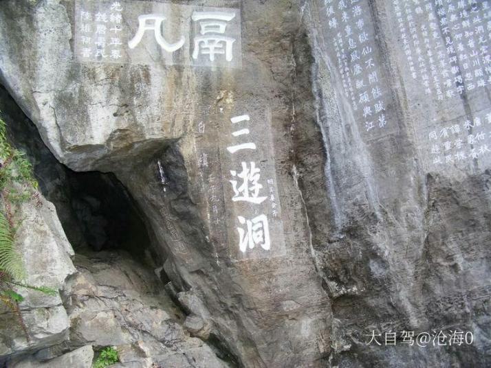 三游洞摩崖位于宜昌西北7公里,是西陵山北峰峭壁上的巨大山洞。它背靠长江三峡的西陵峡口,面临下牢溪,洞奇景异,山水秀丽,山水洞泉浑然一体。洞中横排3根钟乳石柱,洞内列有历代碑刻,洞外崖壁上刻满历代游客的诗文。洞顶之悬石,击之有声,名为“天钟”,地面之凸石,跺之有声,取名“地鼓”,故有“天钟地鼓”之说。