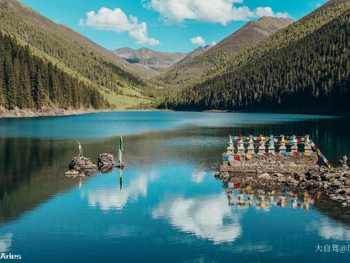 情人海,又名李西神湖、长海子,藏名“撒尔脚措”。 挺拔的云杉、柏树环抱着碧蓝的湖水,像一面镜子平铺在山谷间,湖光山色相映成趣;岸边不远处点缀着藏民红色的木屋,仿佛一座北欧小镇,朴实无华宁静纯粹,它绝对是整个金川县最美的湖泊。 湖水自西向东潜流,夏季有潮汐,冬季湖心不结冰,那触目所及静谧的蓝,给人无限遐想。 若时间允许,可以顺着光影斑驳的木质栈道,沿着湖边漫步,聆听大自然对你述说的每一句喃喃细语!
