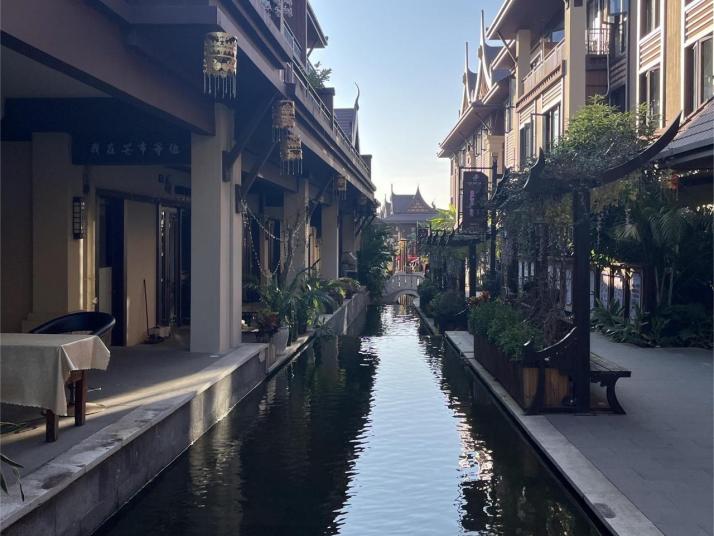 傣族古镇位于芒市,以古傣文化为统领,以建筑为骨、以商贸为气依托山形水势,打造的一座集文化体验、休闲度假、旅游服务和生态居住为一体的古傣文化体验地。