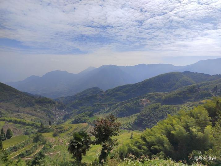 丽水有多处梯田,云和梯田名声较大,有九曲云环和白银谷两处,我去的是前者。自驾上行弯弯绕绕,道路在修建拓宽中,指路设施等还不完备,节假日路边停车有点拥挤。因雨雾天气路段较堵,没有前往白银谷和坑根古镇、七星墩。不过九曲云环的天簌云和观赏点已是不
