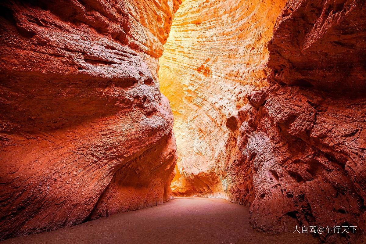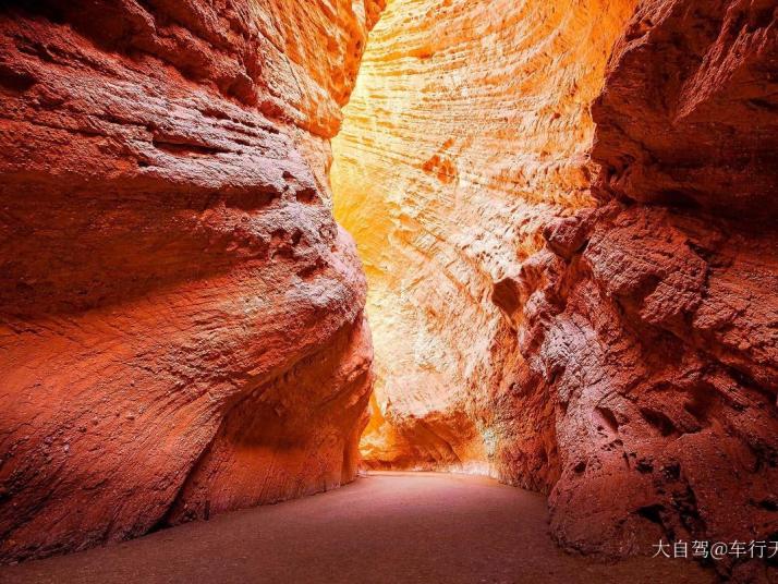 行走在库车大峡谷,红色刺眼的岩如同在火焰一般,你就是虽火焰跳跃的舞者。更美的是,某段裂谷,一片蓝天,置身处地的感受到了什么才是一半是海水,一半是火焰。当然,走完整个大峡谷是需要勇气的,水姚带够,万一没水了,谷中有几处天然泉眼,这也算是造物主