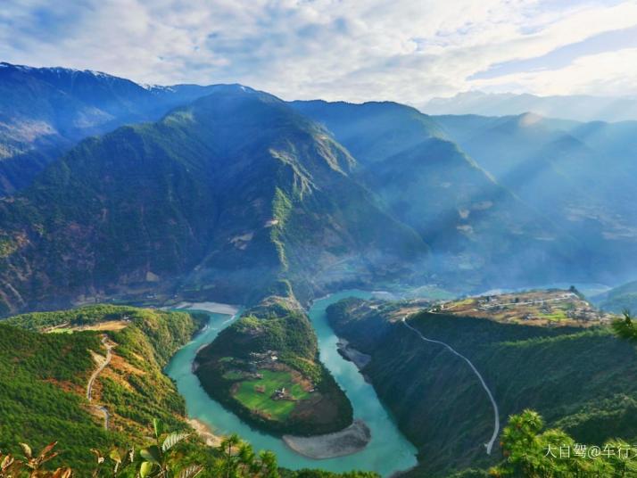 怒江第一湾一听名字就感到霸气十足,怒江第一湾非常有特色,基本是发卡弯,江水为翠绿色,据说是河床有大量含铜的矿石,形成绿色江水,居高眺望绿瞎你的双眼,这里开发晚,商业的铜绿污染少,自然成分大,感觉幽静。