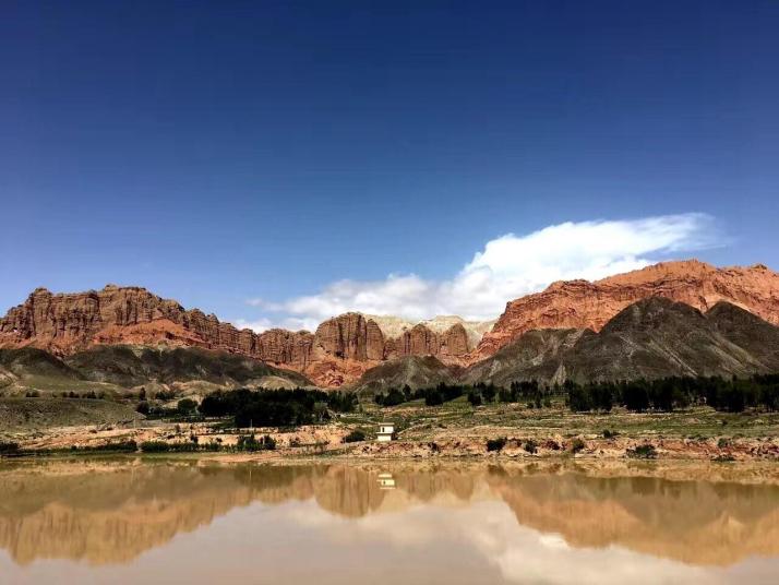坎布拉以李家峡大坝形成的黄河水库为中心,水库碧绿清澈,周围都是红色陡峭的丹霞地貌峰林,非常壮观。在山林间还有茂密的树林,每到秋天树叶金黄灿烂时,山水、树叶相间最为美丽,是拍摄大片的好地方。
