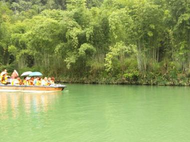 百鸟岩是个地下溶洞,长约一千五百米,有水上芦笛岩之称。每当朝霞初开或夕阳西斜的时候,成千上万的岩燕飞出洞口,贴水嬉戏...