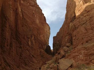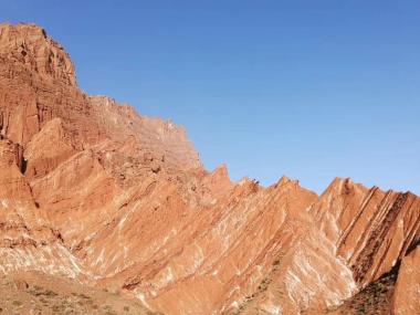 天山神秘峡谷海拔1600米,最高山峰海拔2048米。由红褐色山体组成,当地人称之为克孜利亚(维吾尔语,意为“红色的山...