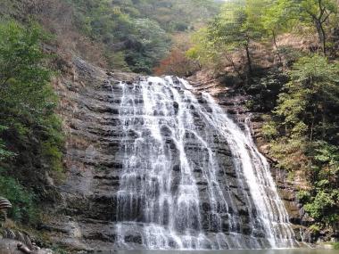 云台天瀑位于泉瀑峡尽头,落差达314米,被誉为“华夏第一高瀑”。远远望去,瀑布上吻蓝天,下蹈石砰,犹如擎天玉柱,宛如...