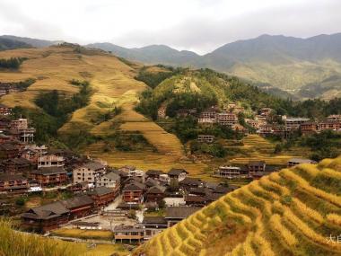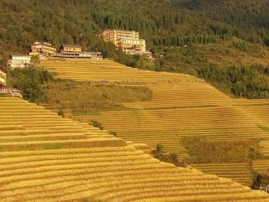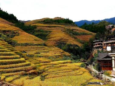 金坑梯田地处龙脊梯田景区的深处,梯田四面群山环绕酷似一个天然大天坑。相比另外两个观景区,这里的地势更为陡峭、梯田的层...