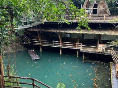 海南槟榔谷黎苗文化旅游景区坐落在万余棵亭亭玉立、婀娜多姿的槟榔林海,并置身于古木参天、藤蔓交织的热带雨林中,槟榔谷因...