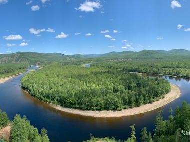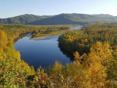 在莫尔道嘎国家森林公园内,激流河注入额尔古纳河入河口上游处,有两个修长小岛相偎而卧,河水呈"S"形回环于两个小岛之间...