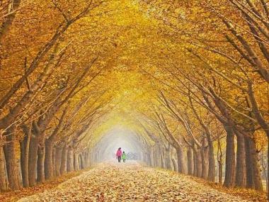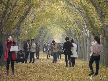 银杏时光隧道长约3公里,道路两侧的银杏枝繁叶茂,树冠相交像一条隧道,每到秋季,隧道一片绚烂金黄,地上铺满落叶,摄影爱...