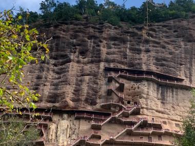 麦积山石窟是中国佛教四大石窟之一,被称为东方雕塑馆的麦积山石窟的一个显著特点是洞窟所处位置极其惊险,大都开凿在悬崖峭...