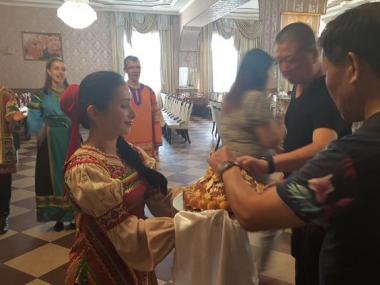 欢迎晚宴特邀请俄罗斯赤塔州民族歌舞团表演极具俄罗斯风情的哥萨克舞蹈与歌曲,安排盐和列巴接待仪式并安排与俄罗斯演员的互...