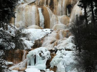 扎嘎瀑布是一座台阶式的叠瀑,瀑布高93.2米、宽35-40米,是中国最高的钙化瀑布,有“中华第一钙化瀑布”的美誉。瀑...