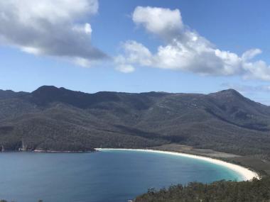 酒杯湾位于东海岸半岛的参差错落的粉红色与灰色大理石峰赫胥斯山(Hazards),是菲欣纳国家公园(Freycinet...