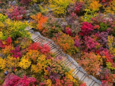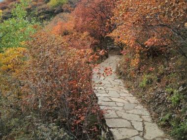 坡峰岭坡起处多以柿树、核桃、桃树、山杏、杨树分布,伴生野酸枣、野山梨、野山菊等。半坡抬阶而上,蜿蜒小路两侧以自然生高...