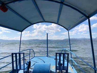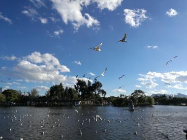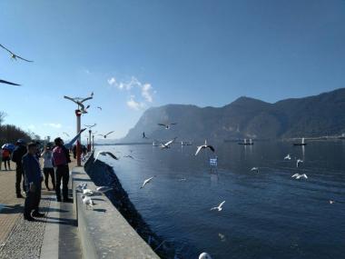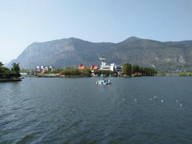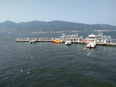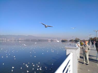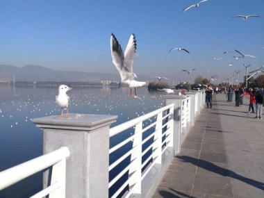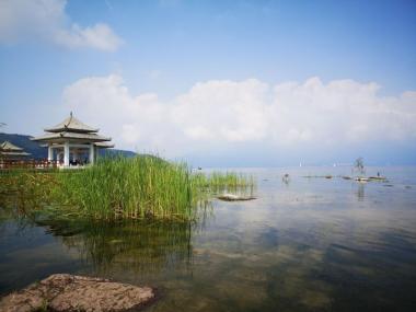 滇池为地震断层陷落型的湖泊,其外形似一弯新月。滇池的湖光山色评价各异,或许没有桂林等地山清水秀,但是在高原上有如此宽...