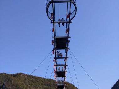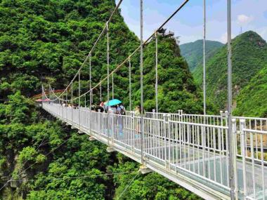 五龙河玻璃桥悬于天梦湖两侧山峰之间,两峰地势险峻,悬壁陡直,中间五龙河河水横穿!玻璃桥长约300米,垂直高度达180...