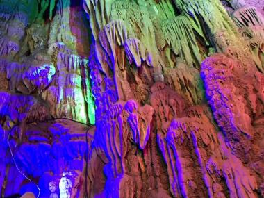 洞天仙境集天坑、溶洞之景于一体,坑洞相连,非常奇特。这里天坑密布,绿树成荫,洞内形态各异的钟乳石错落其中,在景观灯的...
