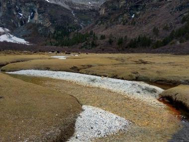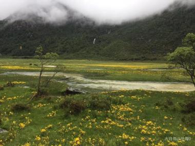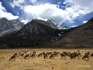 洛绒牛场被“日松贡布”三座神山环绕,贡嘎河从草场穿梭,林间溪流潺潺,与牧场木屋交相辉映,构成了一幅原始而又迷人的景色...
