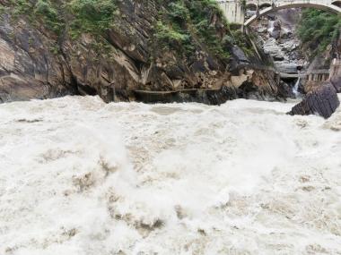虎跳峡峡谷在金沙江上游,全长18公里,分上虎跳、中虎跳、下虎跳三段,迂迥道路25公里,东面为玉龙雪山,西面为迪庆的哈...