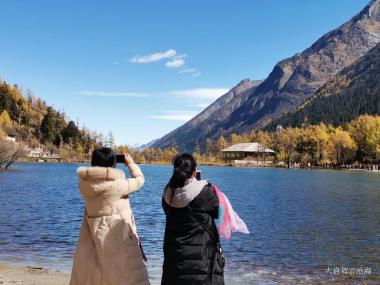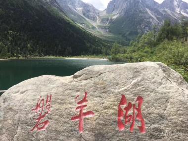 磐羊湖位于理县毕棚沟,湖泊周边水草、灌木生长茂盛,四周群山环绕,蓝天白云、雪山冰川倒映其中,融为一体。因盘羊在这里活...