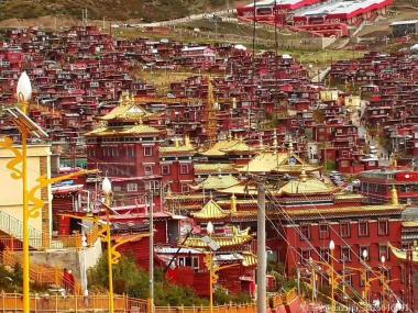 色达五明佛学院全称是色达县喇荣寺五明佛学院,海拔4000米上。在重重的群山环绕之中,以佛学院的大经堂为中心,密密麻麻...
